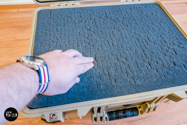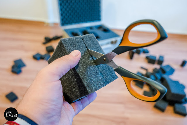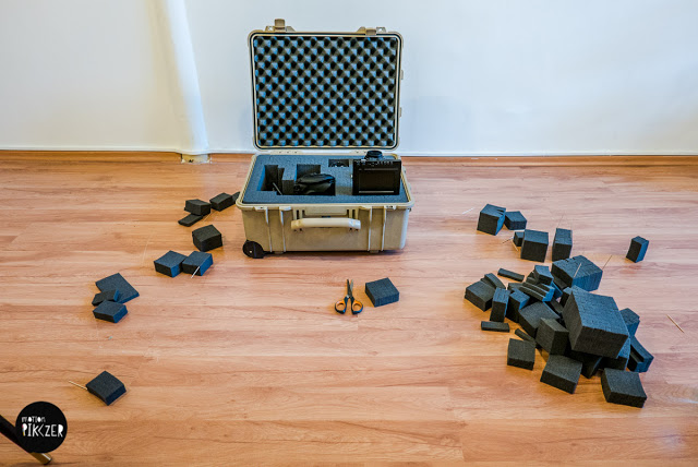 Naszym oczom ukazuje się wnętrze z gąbki. Jest możliwość wybrania również przegródek takich jak w plecakach foto/video. Mam już gąbkowaną walizkę na drona i moim zdaniem to zupełnie inna liga. Oczywiście tracimy tu sporo miejsca między rzeczami, które chcemy przenosić. Pamiętajcie – nie dlatego kupujecie twardy case :).